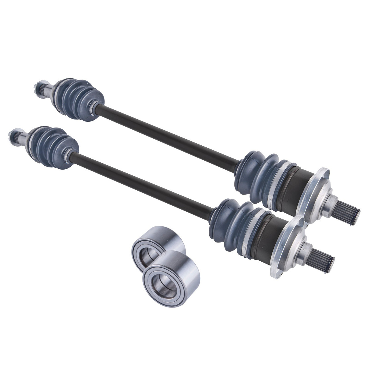 Fully Assembled inboard-outboard cv joints with neoprene boots. Heavy Duty Axle. 1 Year Warranty(Excludes Lift Kits & Torn Boots). Brand New Complete CV Axle Assembly. This kit is enough bearings for 2 wheel.
