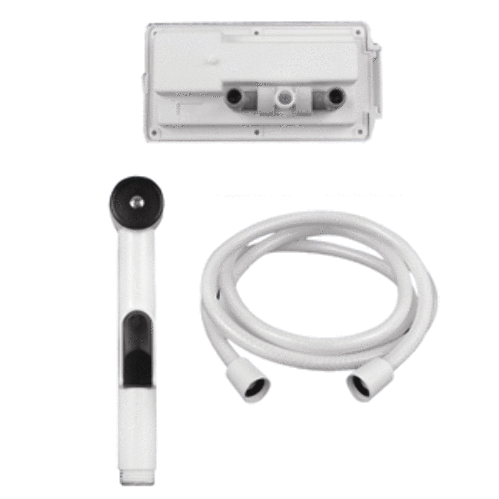 Aft-Deck ShowerInstall flush in the transom or under the gunwale. Includes hinged cover and replaceable sprayer head. Fixtures are corrosion-resistant. Housing and cover are made of high-impact UV resistant engineering-grade plastic and are pre-drilled for six #8 fasteners. Comes with 6' hose shut-off and hot/cold mixing controls. Connects to freshwater system for showeringWARNING: This product can expose you to chemicals which are known to the State of California to cause cancer birth defects or other reproductive harm. For more information go to P65Warnings.ca.gov.