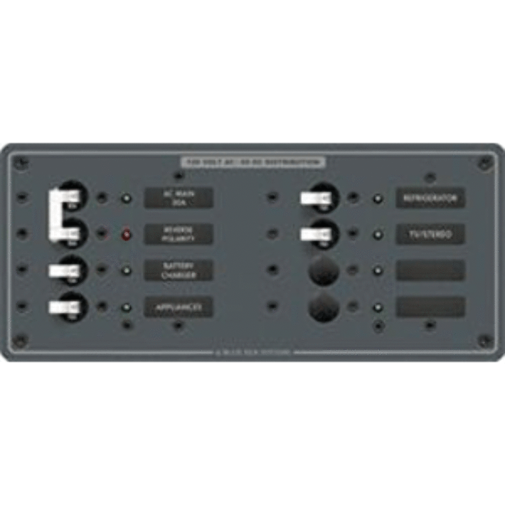 AC Main + 6 PositionsDescription: Main + 6 Positions30A Double Pole Installed: 115A Single Pole Installed: 4Red reverse polarity indicating LED All hot neutral and safety ground buses installed fully pre-wired All circuit label positions are backlit on standard panels No kit required "ON" indicating LEDs installed in all circuit positions Maximum panel amperage 50 Amperes WARNING: This product can expose you to chemicals including di(2-ethylhexyl)phthalate (dehp) which is known to the State of California to cause cancer birth defects or other reproductive harm. For more information go to P65Warnings.ca.gov.