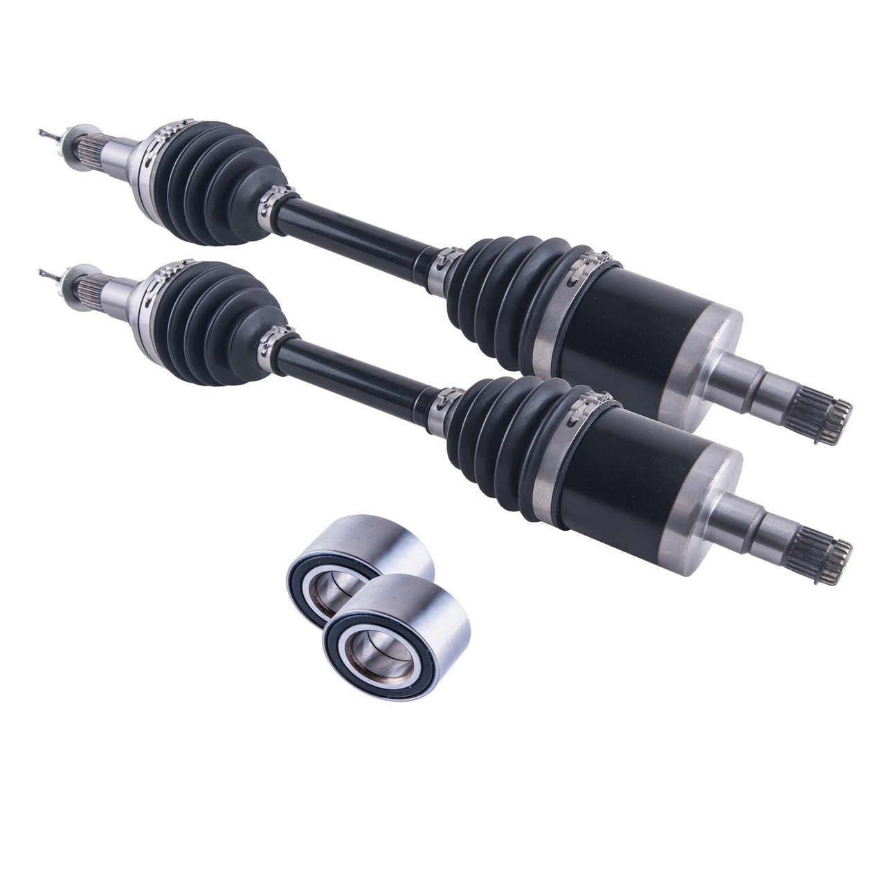 Fully Assembled inboard-outboard cv joints with neoprene boots. Heavy Duty Axle. 1 Year Warranty(Excludes Lift Kits & Torn Boots). This kit is enough bearings for 2 wheels Brand New Complete CV Axle Assembly.