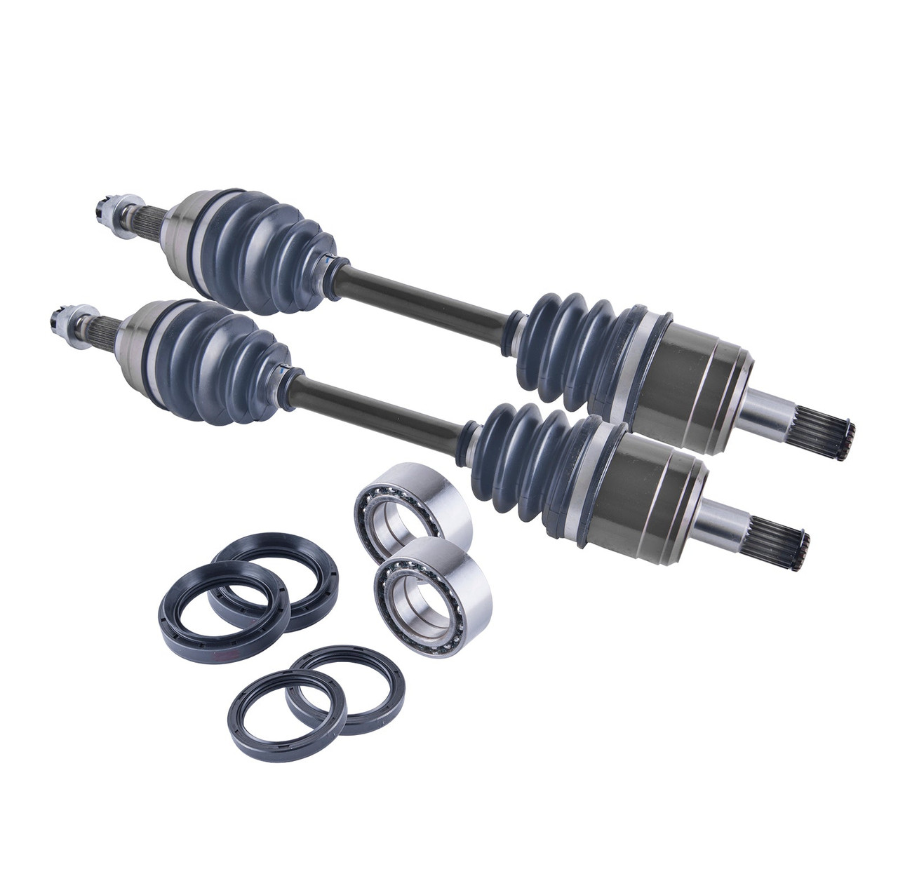 Fully Assembled inboard-outboard cv joints with neoprene boots. Heavy Duty Axle. 1 Year Warranty(Excludes Lift Kits & Torn Boots). Brand New Complete CV Axle Assembly. This kit is enough bearings and seals for 2 wheels.