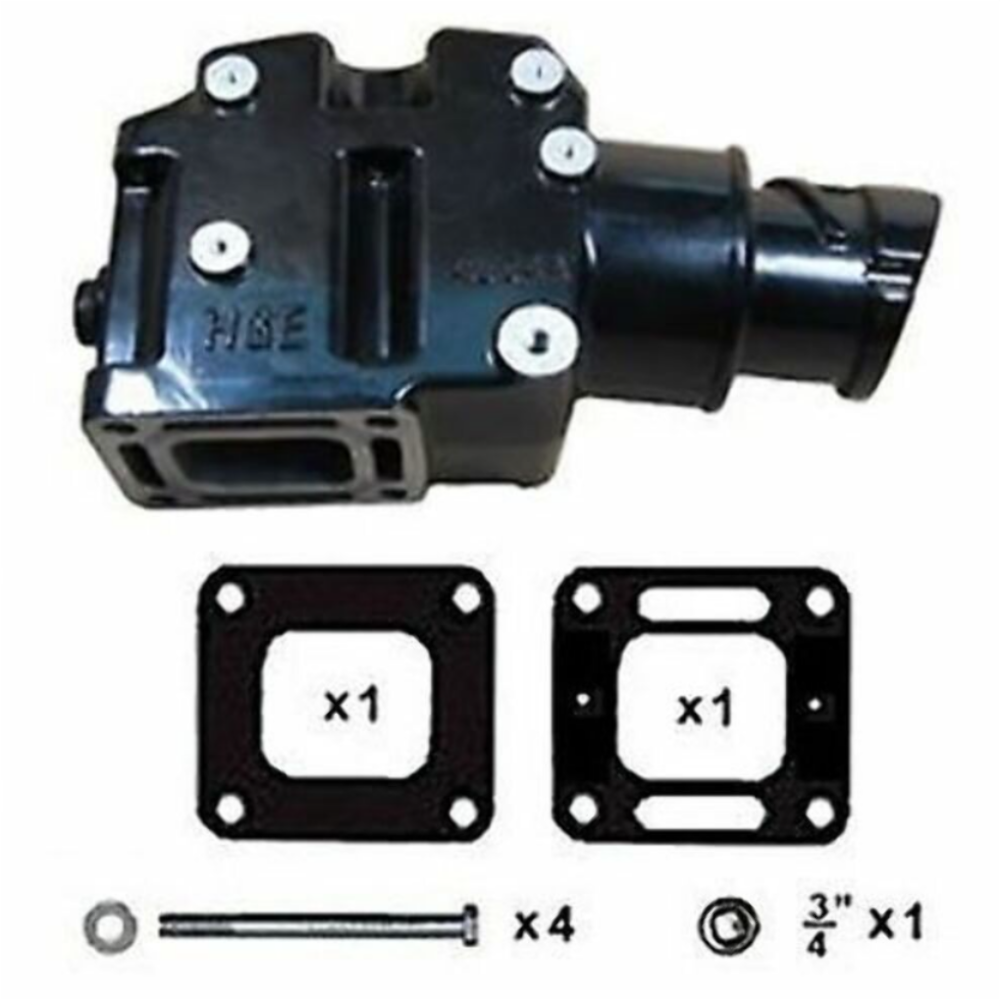 DESCRIPTION: Exhaust Elbow Barr w/Center Rise 4" ID Hose 7 Degree Down Angle. Includes mounting kit.