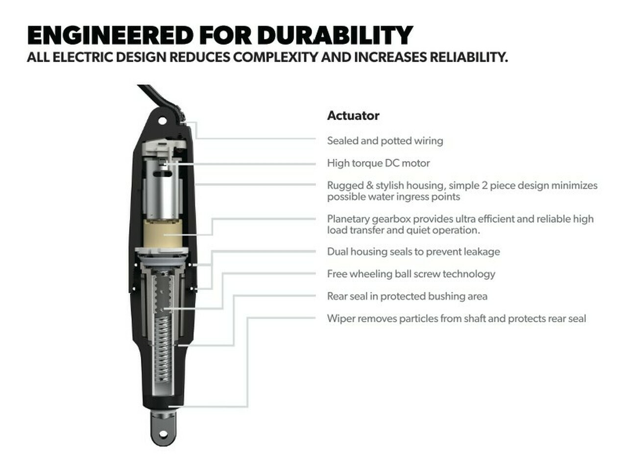 - All-electric design reduces complexity and provides reliability