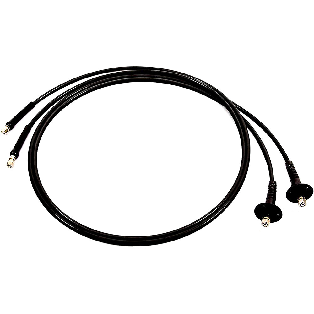 Two high-pressure flexible hoses with pre-crimped nickel-plated fittings, bulkhead fittings (for KIT OB-BHBR only), and bend restrictors on one end.
