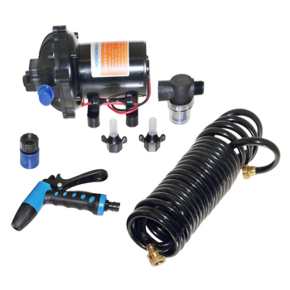 - Washdown Pump Kit 60PSI 5GPM 12V WDKIT50 Hose-Nozzle-Fittings Boat RV Camper