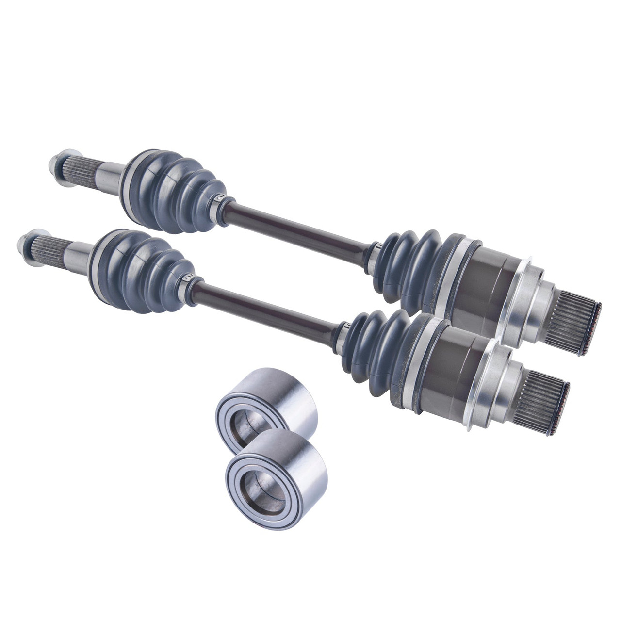 Fully Assembled inboard-outboard cv joints with neoprene boots. Heavy Duty Axle. 1 Year Warranty(Excludes Lift Kits & Torn Boots). Brand New Complete CV Axle Assembly. This kit is enough bearings for 2 wheels.
